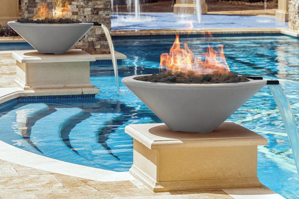 Each fire bowl has built-in ventilation, a large service opening and a removable burner pan. The water bowls feature a deeper spillway for enhanced water flow, with an embedded bonding wire for added safety.
