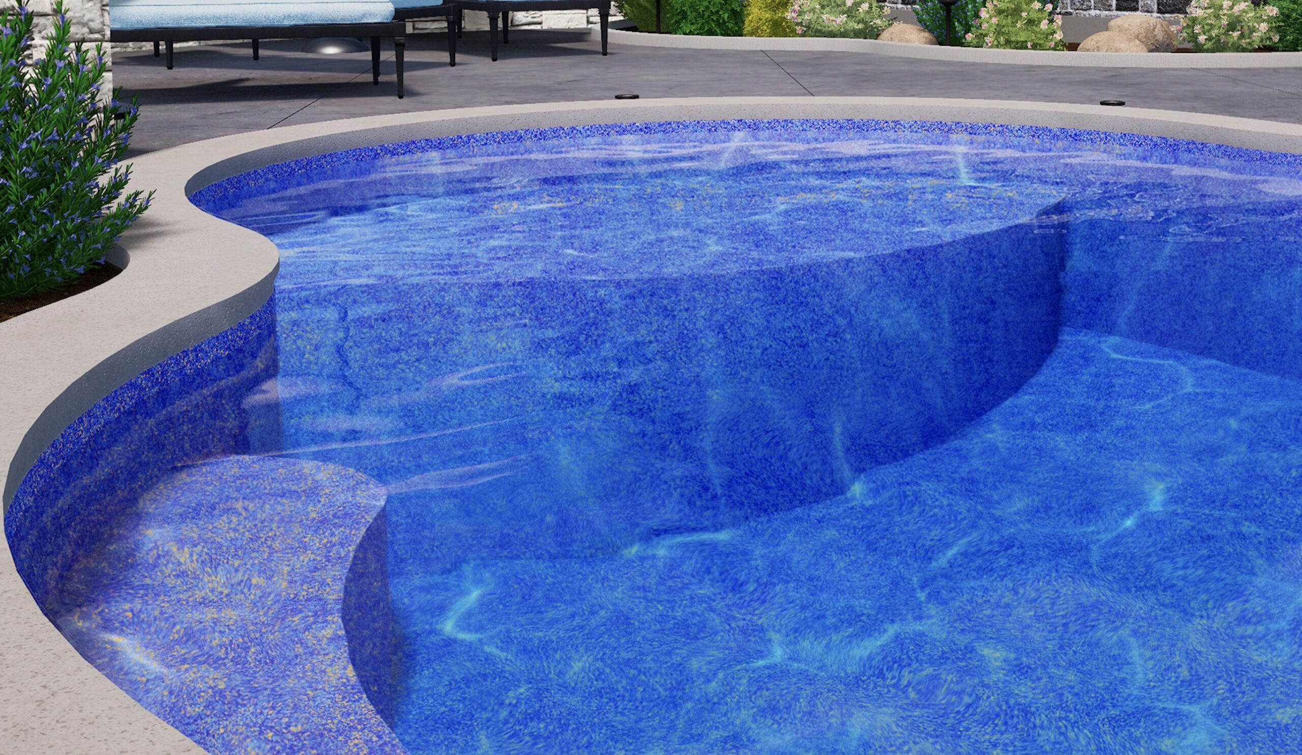 Poolside by CGT’s Cirali Beach provides builders with a new pool liner design that uses sparkling gold pebbles combined with natural stones to make the pool water shimmer using an exclusive Aquashimmer effect. This pattern helps pool professionals stand out from the competition and gives pools a stunning look.