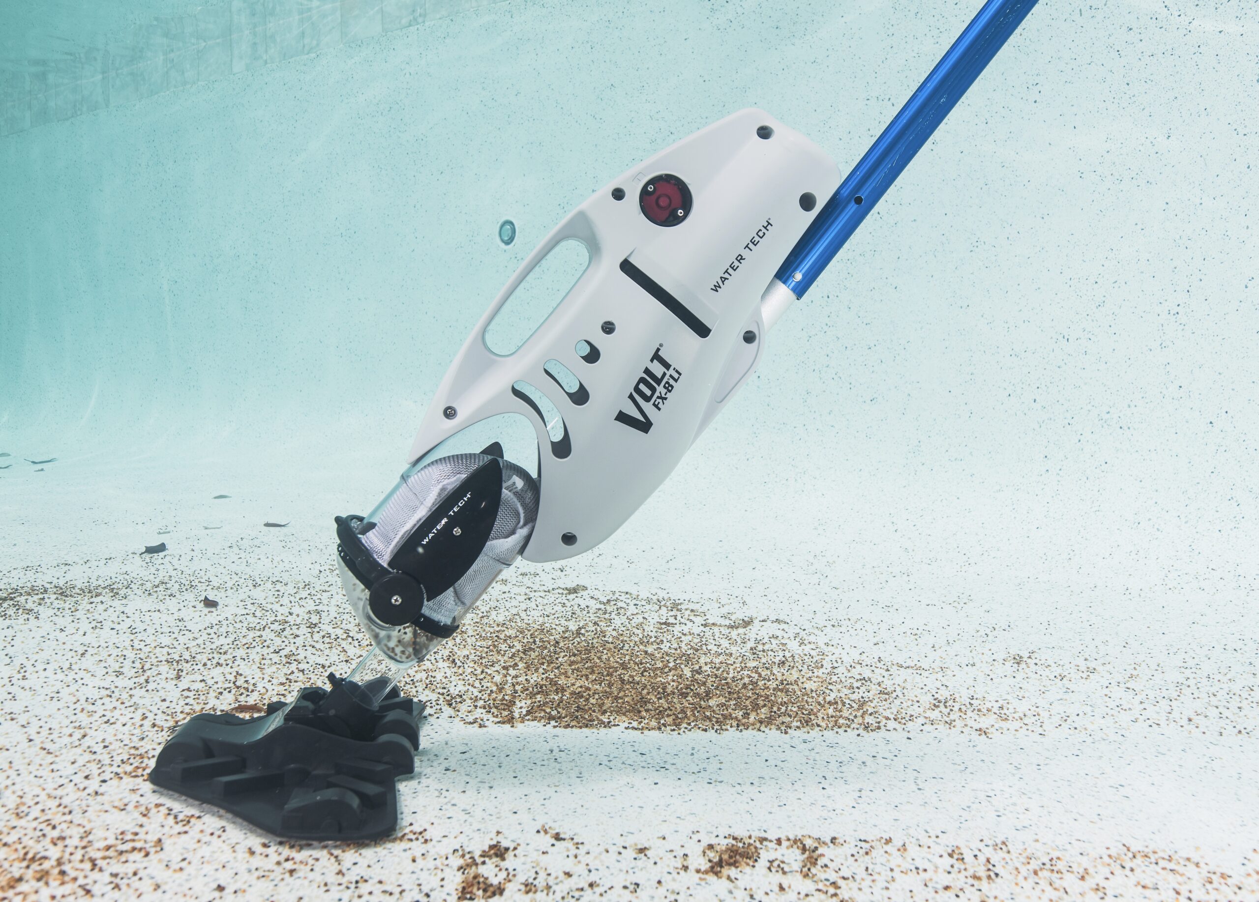 The Water Tech Volt FX-8Li cleans in-ground pools effortlessly using an ultrahigh flow pump. It offers a versatile 13-inch flexible vacuum head, integrated spot cleaning/corner nozzle and a large debris chamber. The reusable, high-capacity filter bag captures algae, sand, silt, leaves and larger debris. The cleaner has a 60-minute runtime and comes with a two-year warranty.