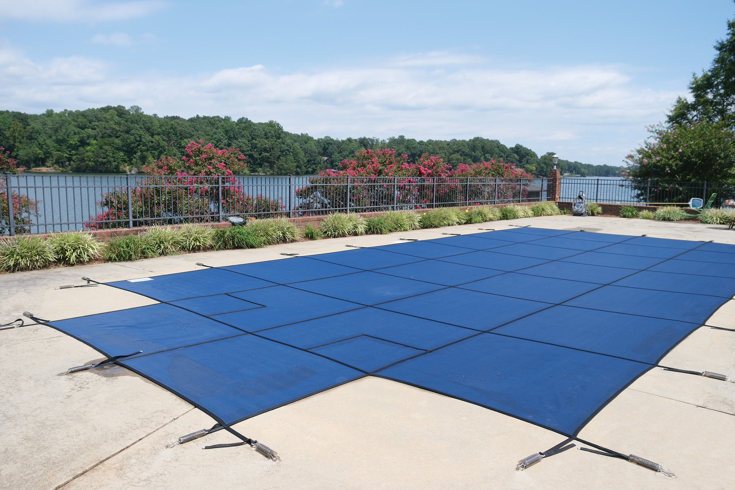 The patented SmartMesh safety cover features a high-tech weave that allows water to pass through while completely blocking sunlight and filtering debris down to 40 microns. This allows pool owners to quickly get back to swimming in clean, algae-free water. These safety covers are manufactured with U.S.-made materials